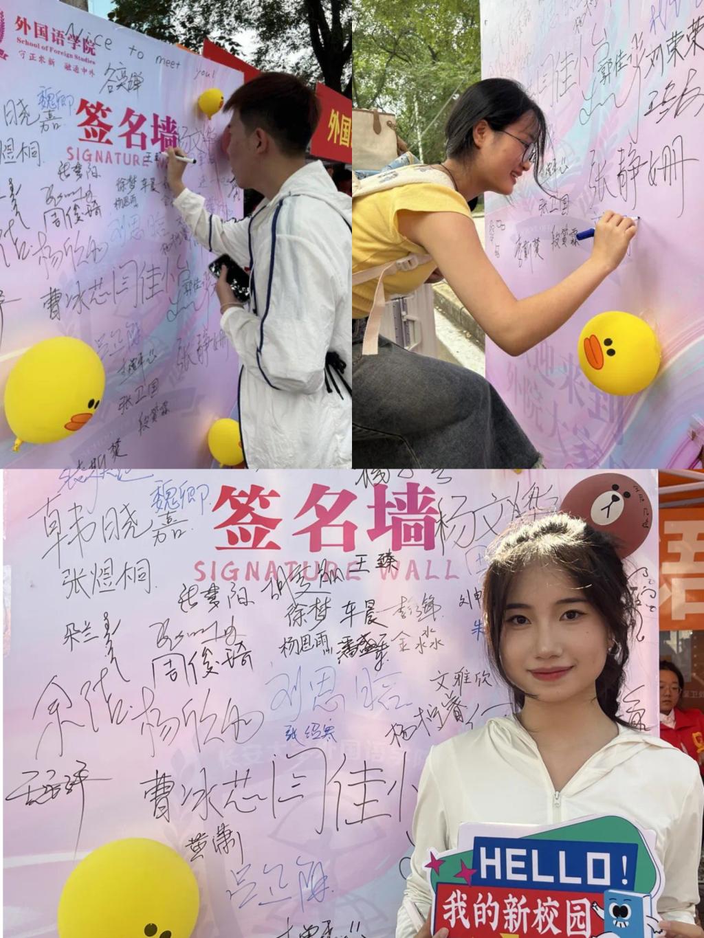 此外,学院特地为新生们定制了签名墙,新生们在签名墙上签下了自己的姓名,并与家长在签名墙前进行合影留念。